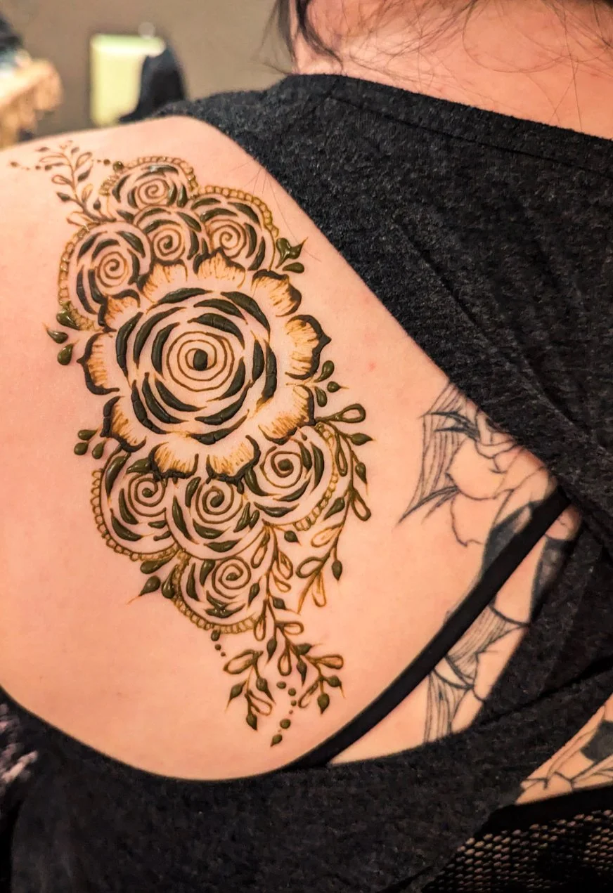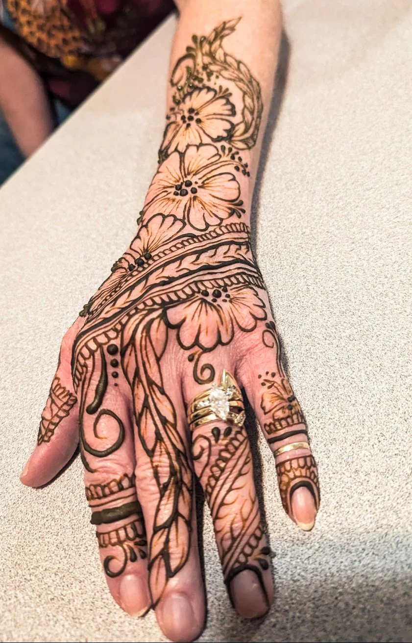 I've practiced henna for 7+ years now. With a range of styles, services and experience, I use henna to bring your unique vision to life; one client at a time, each leaving with their own personal henna statement. From my home studio, to events, to private parties and more, each piece is created with intention and there is something here for everyone.